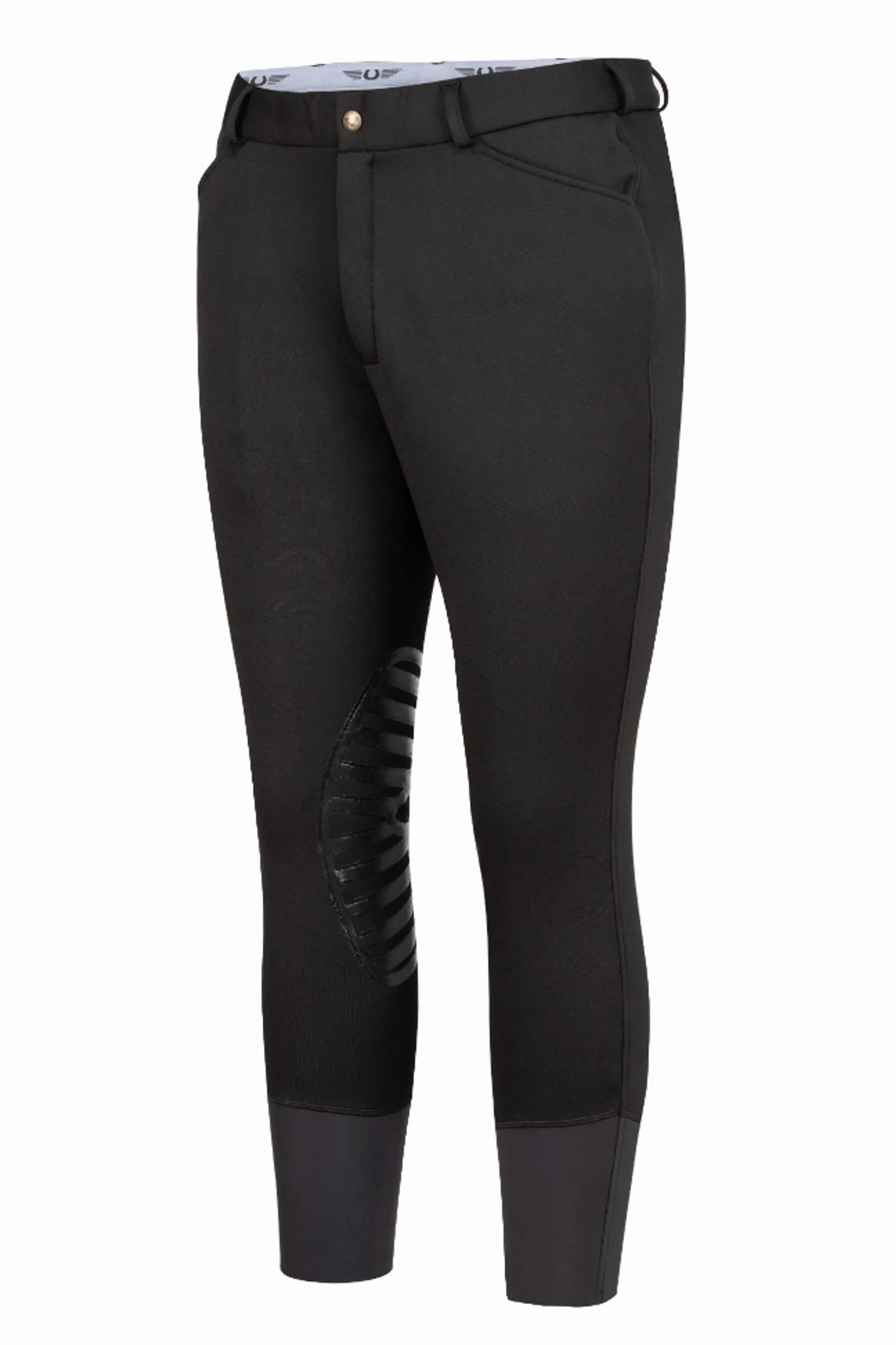 The TuffRider Men's Patrol Unifleece Breeches are made with soft faux fleece on the inside for insulation and a spandex blend exterior for mobility. Performance features include silicone knee patches and contoured sock bottoms for a seamless fit underneath boots. Ideal for riders trying to beat the winter weather.