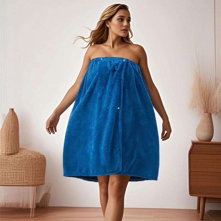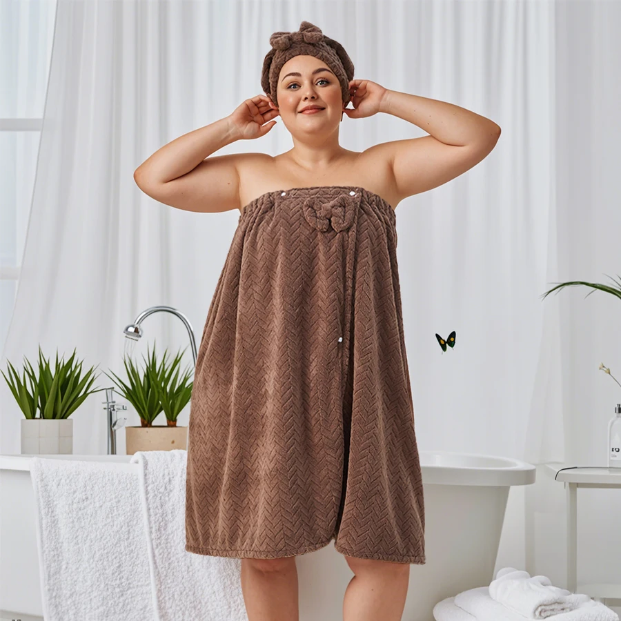 The wearable bath wrap features a secure closure design that stays in place while you move freely, allowing you to apply skincare, do your makeup, or simply relax without worrying about slipping towels. The coordinating hair drying cap quickly absorbs moisture from your hair, reducing drying time and protecting your hair from heat damage. Together, they create a perfectly coordinated bathroom ensemble that's as practical as it is stylish.