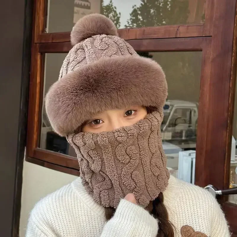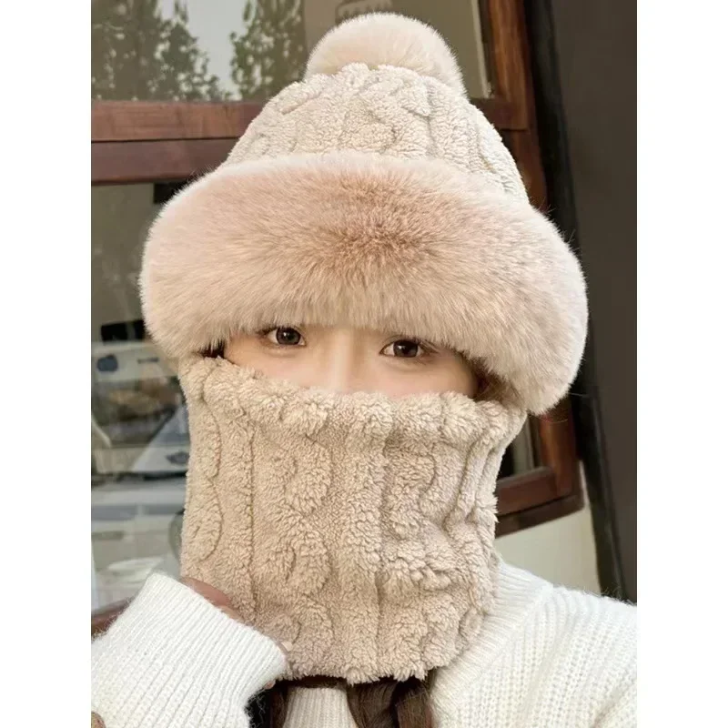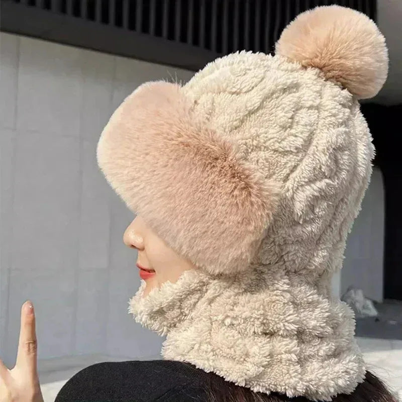 Stay adorably warm all winter with our charming pom pom beanie bonnet. This multifunctional one-piece design combines a cozy beanie, warm scarf, and protective face mask in one seamless fleece cap, delivering complete cold-weather coverage with playful style.